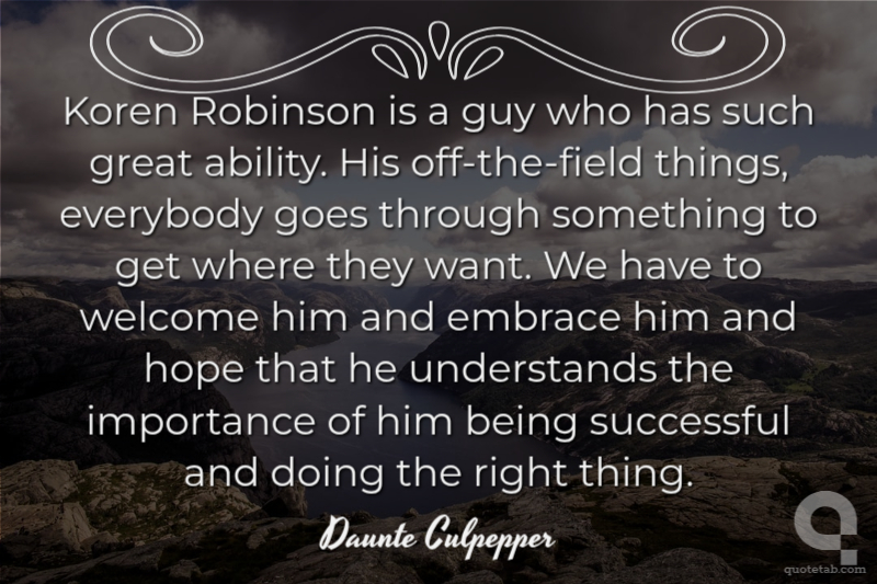 Koren Robinson is a guy who has such great ability. His off-the-field things, everybody goes through something to get where they want. We have to welcome him and embrace him and hope that he understands the importance of him being successful and doing the right thing.