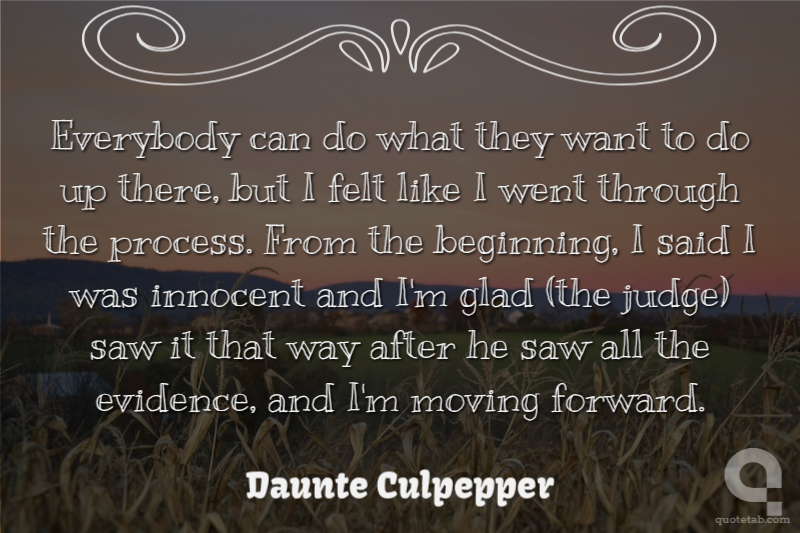 Everybody can do what they want to do up there, but I felt like I went through the process. From the beginning, I said I was innocent and I'm glad (the judge) saw it that way after he saw all the evidence, and I'm moving forward.