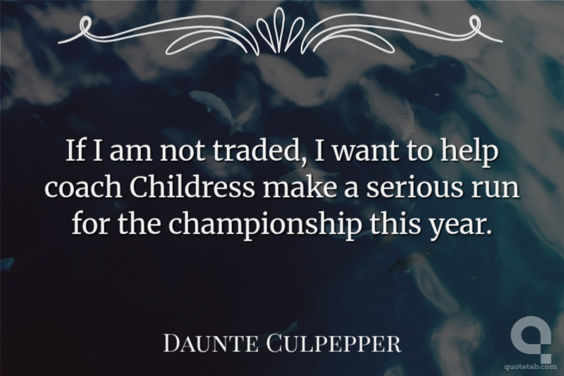 If I am not traded, I want to help coach Childress make a serious run for the championship this year.