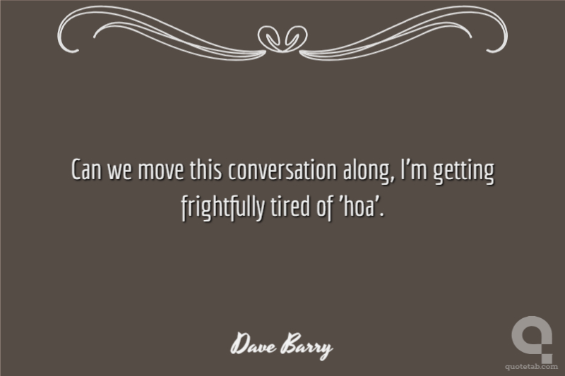 Can we move this conversation along, I'm getting frightfully tired of 'hoa'.