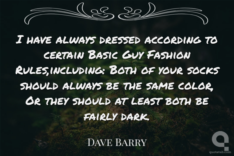 I have always dressed according to certain Basic Guy Fashion Rules,including: Both of your socks should always be the same color, Or they should at least both be fairly dark.