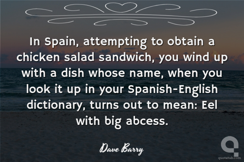 In Spain, attempting to obtain a chicken salad sandwich, you wind up with a dish whose name, when you look it up in your Spanish-English dictionary, turns out to mean: Eel with big abcess.
