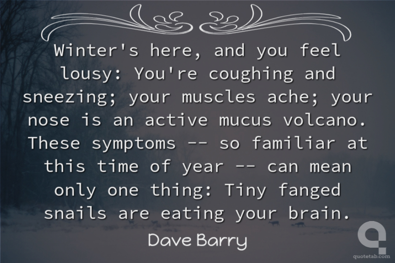 Winter's here, and you feel lousy: You're coughing and sneezing; your muscles ache; your nose is an active mucus volcano. These symptoms -- so familiar at this time of year -- can mean only one thing: Tiny fanged snails are eating your brain.