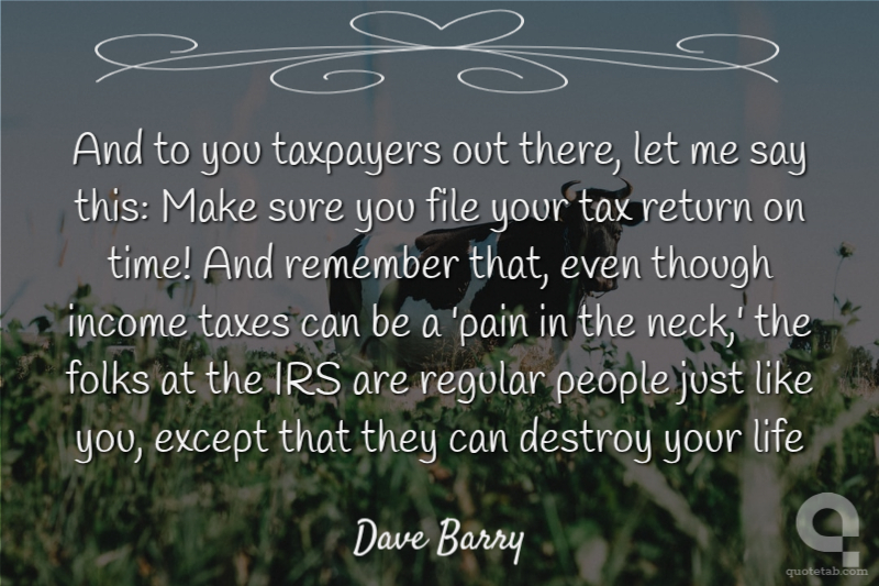 And to you taxpayers out there, let me say this: Make sure you file your tax return on time! And remember that, even though income taxes can be a 'pain in the neck,' the folks at the IRS are regular people just like you, except that they can destroy your life