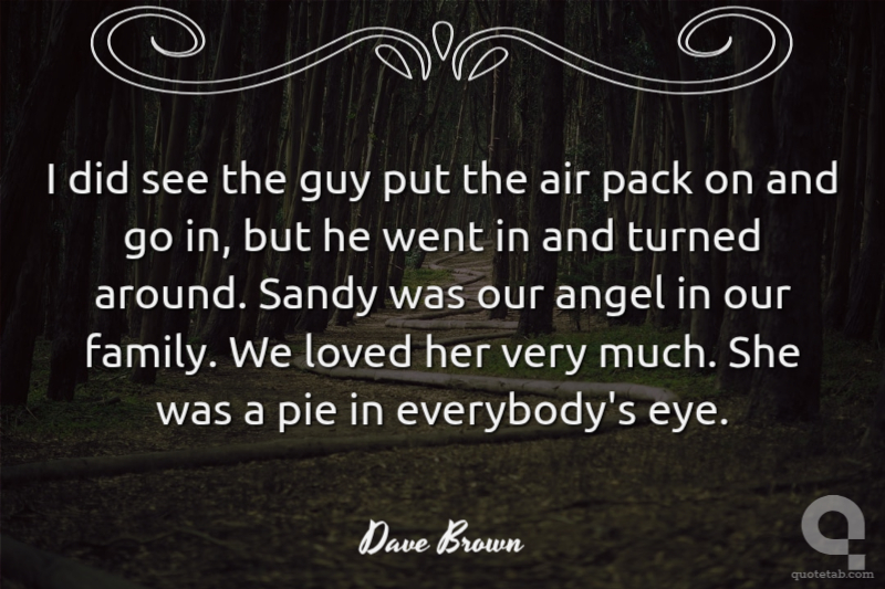 I did see the guy put the air pack on and go in, but he went in and turned around. Sandy was our angel in our family. We loved her very much. She was a pie in everybody's eye.