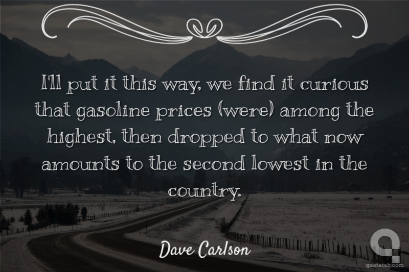 I'll put it this way, we find it curious that gasoline prices (were) among the highest, then dropped to what now amounts to the second lowest in the country.