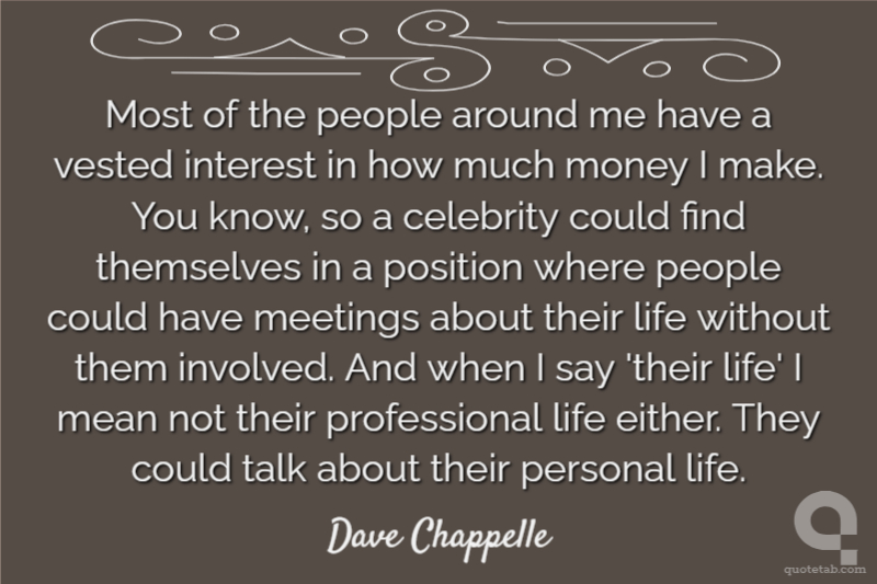 Most of the people around me have a vested interest in how much money I make. You know, so a celebrity could find themselves in a position where people could have meetings about their life without them involved. And when I say 'their life' I mean not their professional life either. They could talk about their personal life.