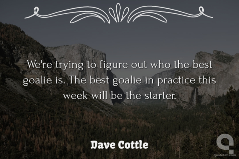 We're trying to figure out who the best goalie is. The best goalie in practice this week will be the starter.