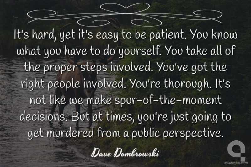 It's hard, yet it's easy to be patient. You know what you have to do yourself. You take all of the proper steps involved. You've got the right people involved. You're thorough. It's not like we make spur-of-the-moment decisions. But at times, you're just going to get murdered from a public perspective.