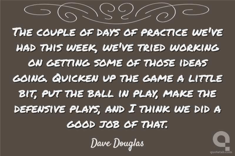 The couple of days of practice we've had this week, we've tried working on getting some of those ideas going. Quicken up the game a little bit, put the ball in play, make the defensive plays, and I think we did a good job of that.