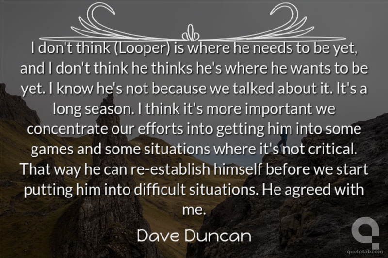 I don't think (Looper) is where he needs to be yet, and I don't think he thinks he's where he wants to be yet. I know he's not because we talked about it. It's a long season. I think it's more important we concentrate our efforts into getting him into some games and some situations where it's not critical. That way he can re-establish himself before we start putting him into difficult situations. He agreed with me.