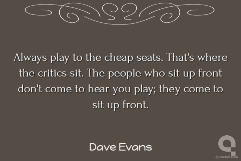 Always play to the cheap seats. That's where the critics sit. The people who sit up front don't come to hear you play; they come to sit up front.