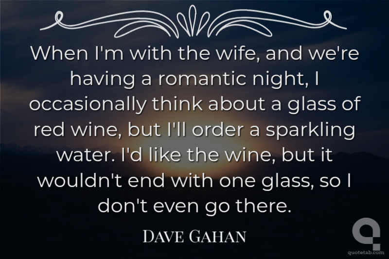 When I'm with the wife, and we're having a romantic night, I occasionally think about a glass of red wine, but I'll order a sparkling water. I'd like the wine, but it wouldn't end with one glass, so I don't even go there.