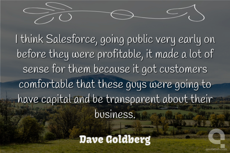 I think Salesforce, going public very early on before they were profitable, it made a lot of sense for them because it got customers comfortable that these guys were going to have capital and be transparent about their business.