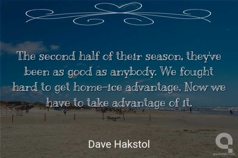The second half of their season, they've been as good as anybody. We fought hard to get home-ice advantage. Now we have to take advantage of it.