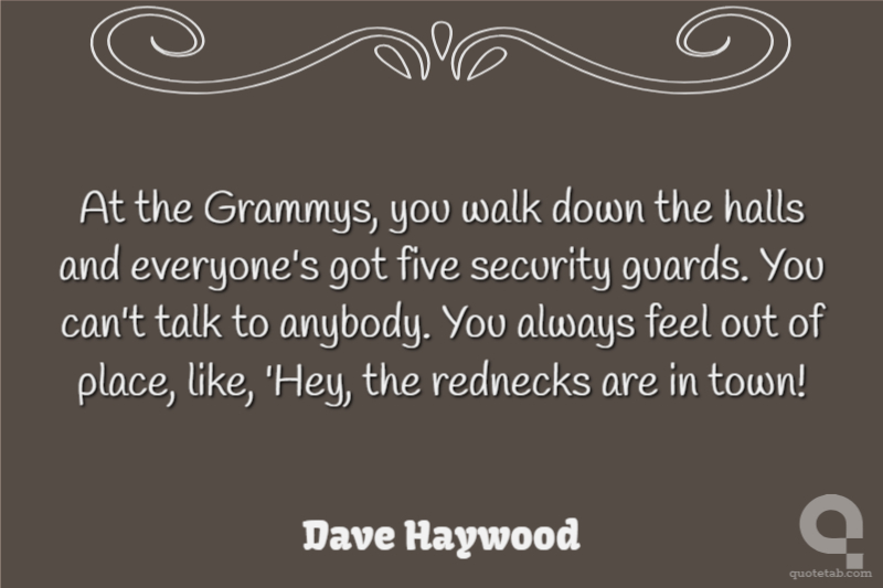 At the Grammys, you walk down the halls and everyone's got five security guards. You can't talk to anybody. You always feel out of place, like, 'Hey, the rednecks are in town!