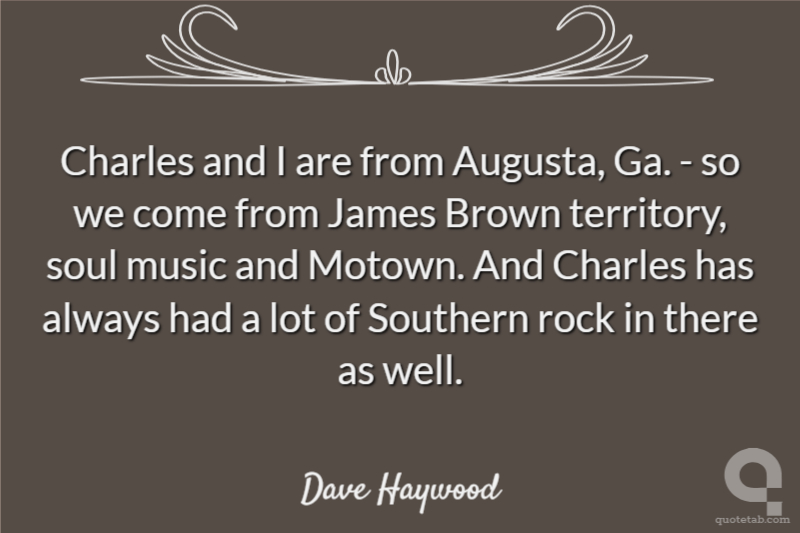 Charles and I are from Augusta, Ga. - so we come from James Brown territory, soul music and Motown. And Charles has always had a lot of Southern rock in there as well.
