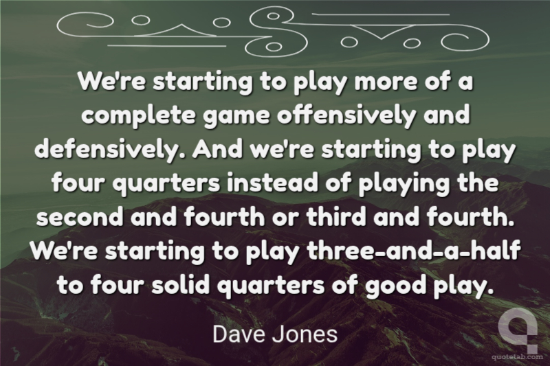 We're starting to play more of a complete game offensively and defensively. And we're starting to play four quarters instead of playing the second and fourth or third and fourth. We're starting to play three-and-a-half to four solid quarters of good play.
