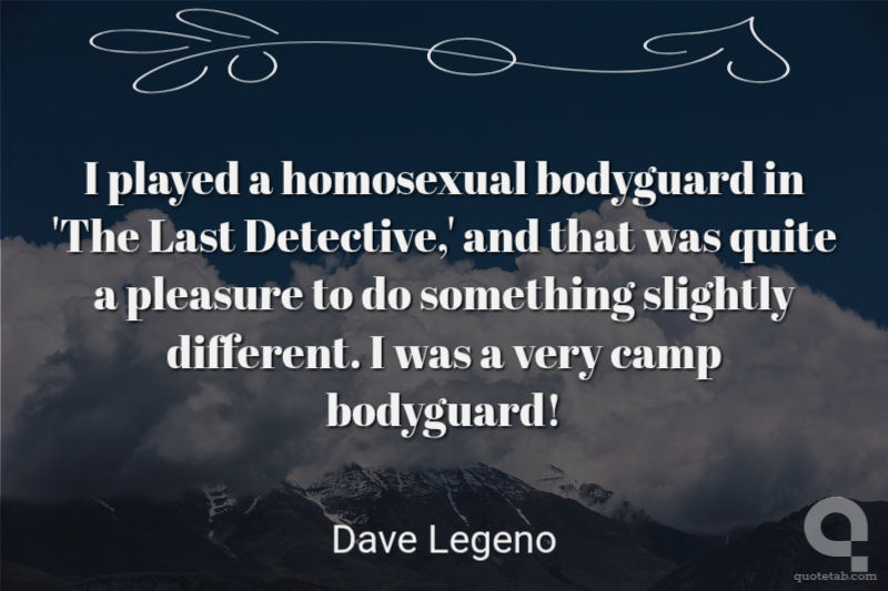 I played a homosexual bodyguard in 'The Last Detective,' and that was quite a pleasure to do something slightly different. I was a very camp bodyguard!