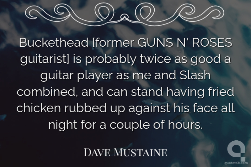 Buckethead [former GUNS N' ROSES guitarist] is probably twice as good a guitar player as me and Slash combined, and can stand having fried chicken rubbed up against his face all night for a couple of hours.