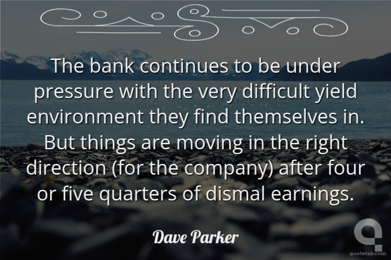 The bank continues to be under pressure with the very difficult yield environment they find themselves in. But things are moving in the right direction (for the company) after four or five quarters of dismal earnings.