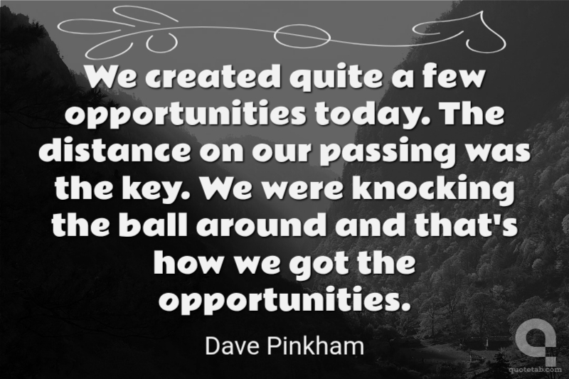 We created quite a few opportunities today. The distance on our passing was the key. We were knocking the ball around and that's how we got the opportunities.
