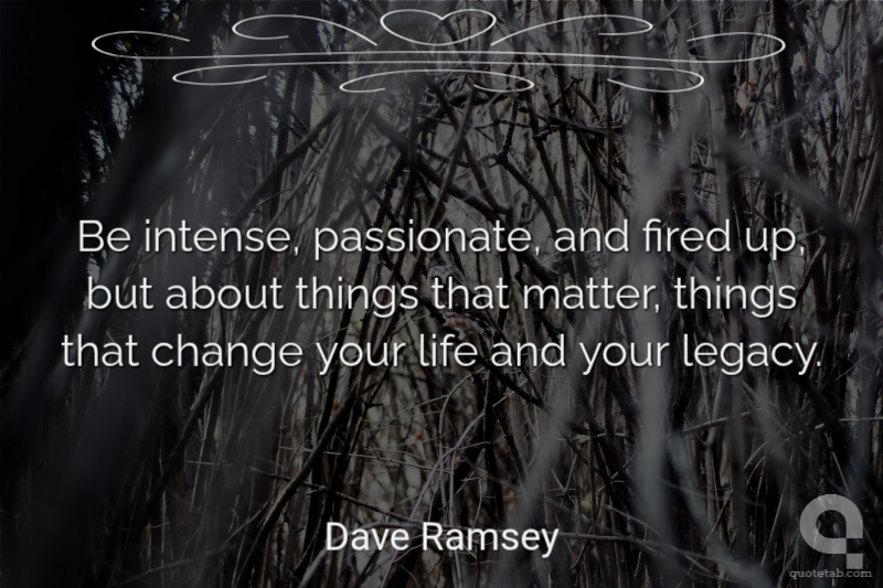Be intense, passionate, and fired up, but about things that matter, things that change your life and your legacy.