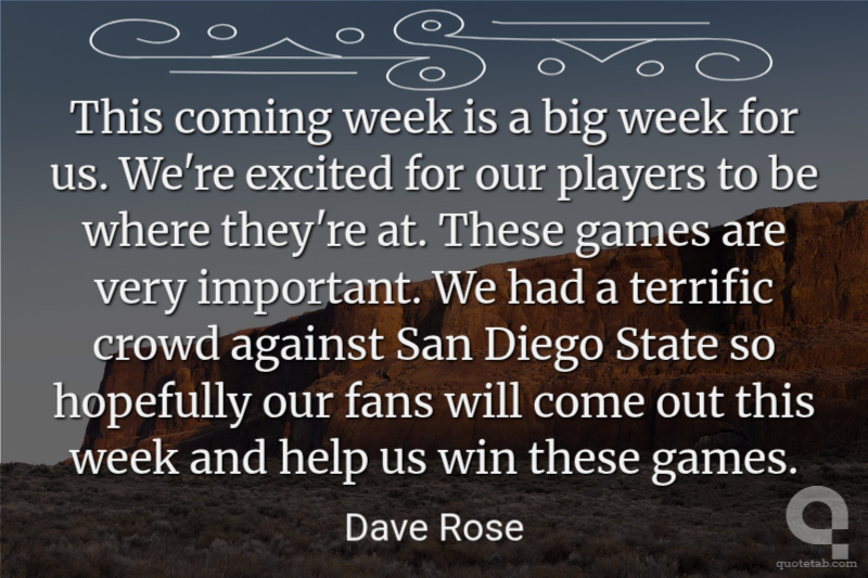 This coming week is a big week for us. We're excited for our players to be where they're at. These games are very important. We had a terrific crowd against San Diego State so hopefully our fans will come out this week and help us win these games.