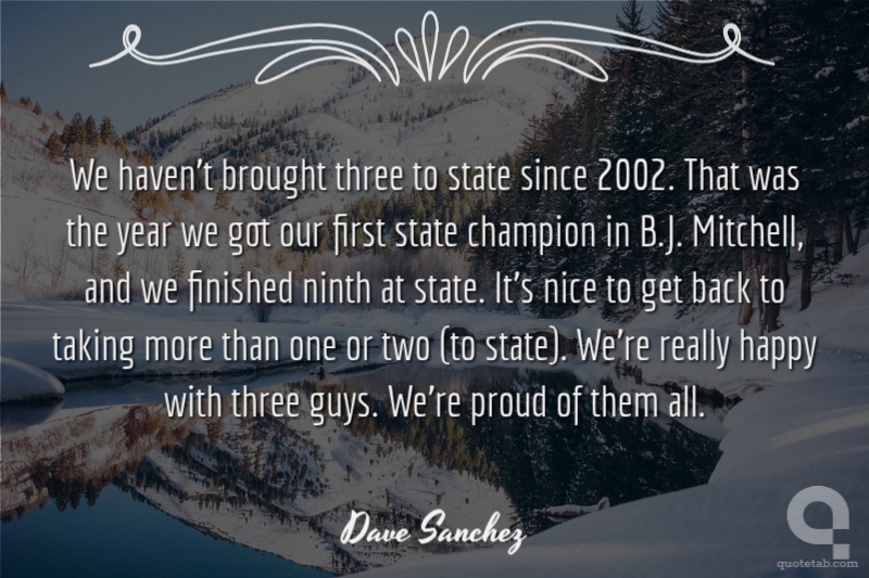 We haven't brought three to state since 2002. That was the year we got our first state champion in B.J. Mitchell, and we finished ninth at state. It's nice to get back to taking more than one or two (to state). We're really happy with three guys. We're proud of them all.