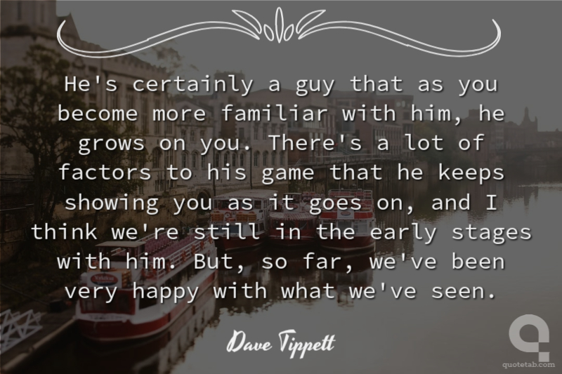 He's certainly a guy that as you become more familiar with him, he grows on you. There's a lot of factors to his game that he keeps showing you as it goes on, and I think we're still in the early stages with him. But, so far, we've been very happy with what we've seen.