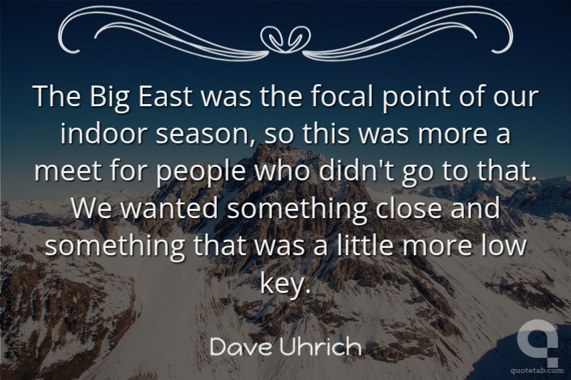 The Big East was the focal point of our indoor season, so this was more a meet for people who didn't go to that. We wanted something close and something that was a little more low key.