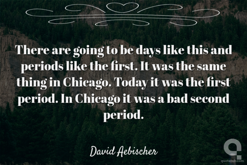 There are going to be days like this and periods like the first. It was the same thing in Chicago. Today it was the first period. In Chicago it was a bad second period.