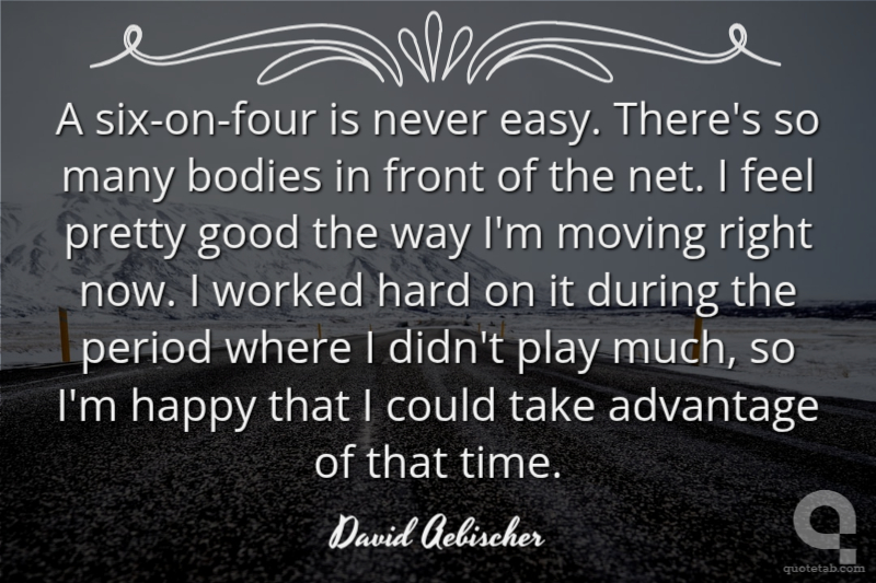 A six-on-four is never easy. There's so many bodies in front of the net. I feel pretty good the way I'm moving right now. I worked hard on it during the period where I didn't play much, so I'm happy that I could take advantage of that time.