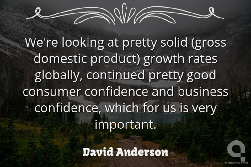 We're looking at pretty solid (gross domestic product) growth rates globally, continued pretty good consumer confidence and business confidence, which for us is very important.