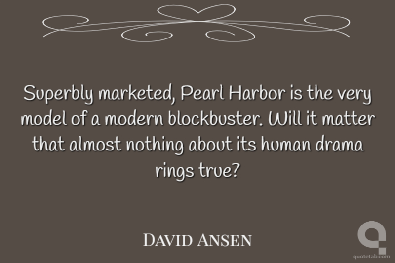 Superbly marketed, Pearl Harbor is the very model of a modern blockbuster. Will it matter that almost nothing about its human drama rings true?