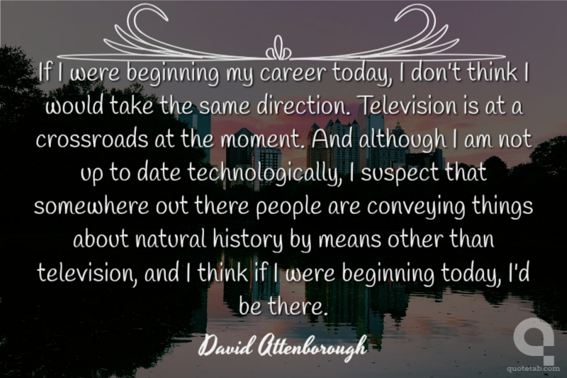 If I were beginning my career today, I don't think I would take the same direction. Television is at a crossroads at the moment. And although I am not up to date technologically, I suspect that somewhere out there people are conveying things about natural history by means other than television, and I think if I were beginning today, I'd be there.
