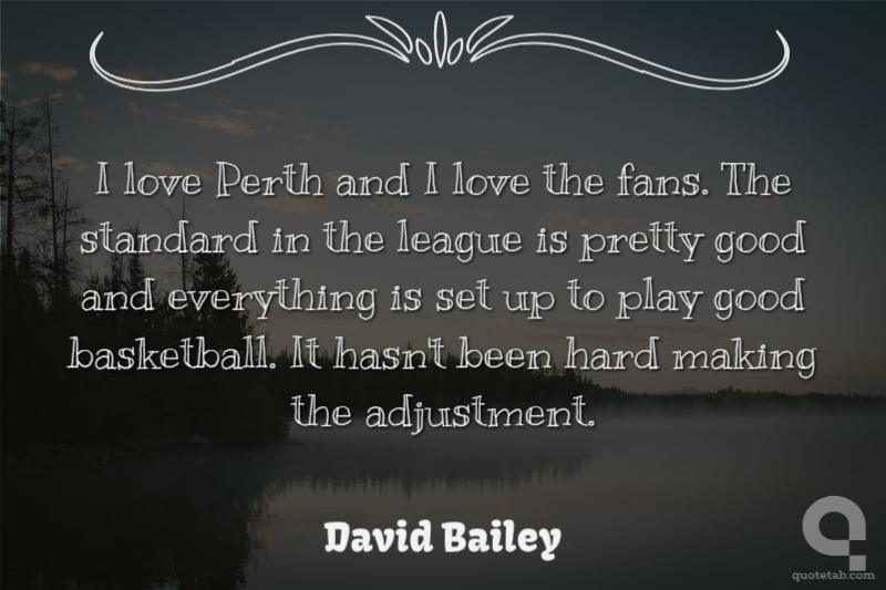 I love Perth and I love the fans. The standard in the league is pretty good and everything is set up to play good basketball. It hasn't been hard making the adjustment.