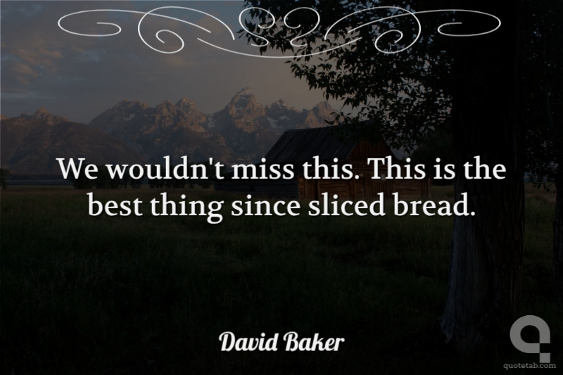 We wouldn't miss this. This is the best thing since sliced bread.