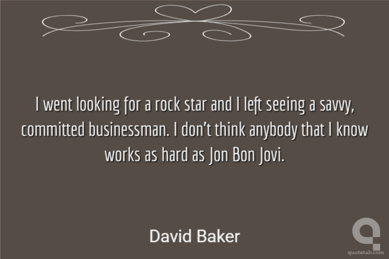 I went looking for a rock star and I left seeing a savvy, committed businessman. I don't think anybody that I know works as hard as Jon Bon Jovi.