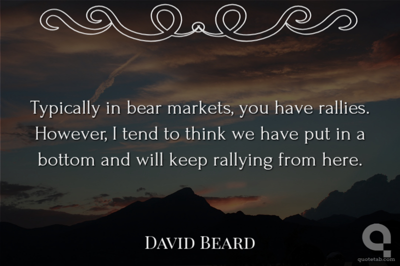 Typically in bear markets, you have rallies. However, I tend to think we have put in a bottom and will keep rallying from here.
