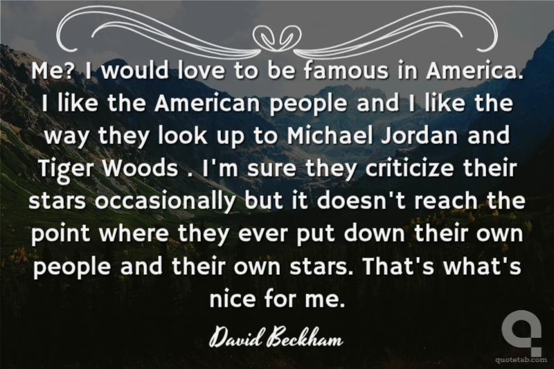 Me? I would love to be famous in America. I like the American people and I like the way they look up to Michael Jordan and Tiger Woods . I'm sure they criticize their stars occasionally but it doesn't reach the point where they ever put down their own people and their own stars. That's what's nice for me.