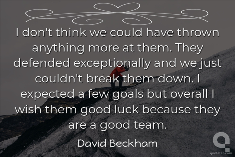 I don't think we could have thrown anything more at them. They defended exceptionally and we just couldn't break them down. I expected a few goals but overall I wish them good luck because they are a good team.