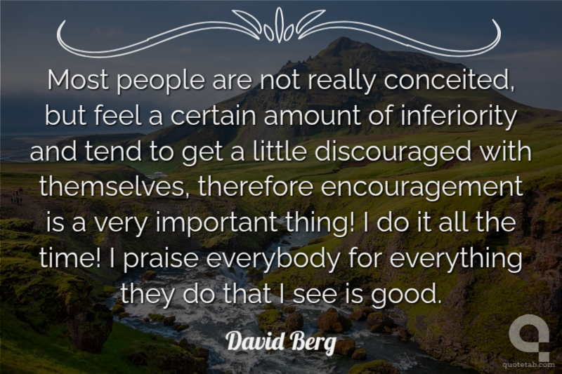 Most people are not really conceited, but feel a certain amount of inferiority and tend to get a little discouraged with themselves, therefore encouragement is a very important thing! I do it all the time! I praise everybody for everything they do that I see is good.