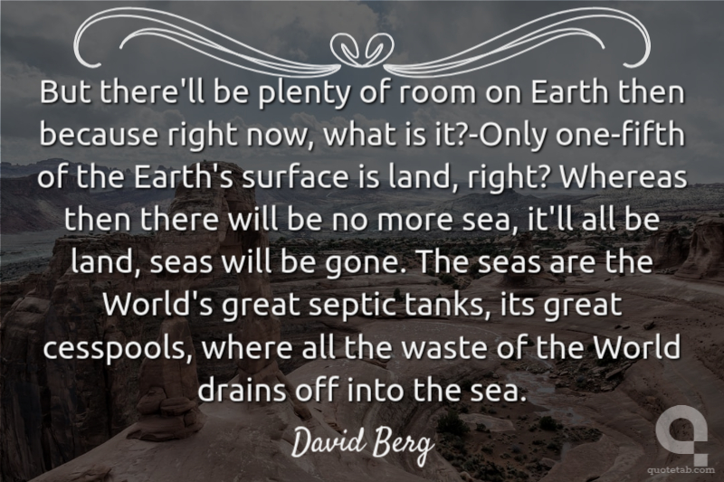 But there'll be plenty of room on Earth then because right now, what is it?-Only one-fifth of the Earth's surface is land, right? Whereas then there will be no more sea, it'll all be land, seas will be gone. The seas are the World's great septic tanks, its great cesspools, where all the waste of the World drains off into the sea.