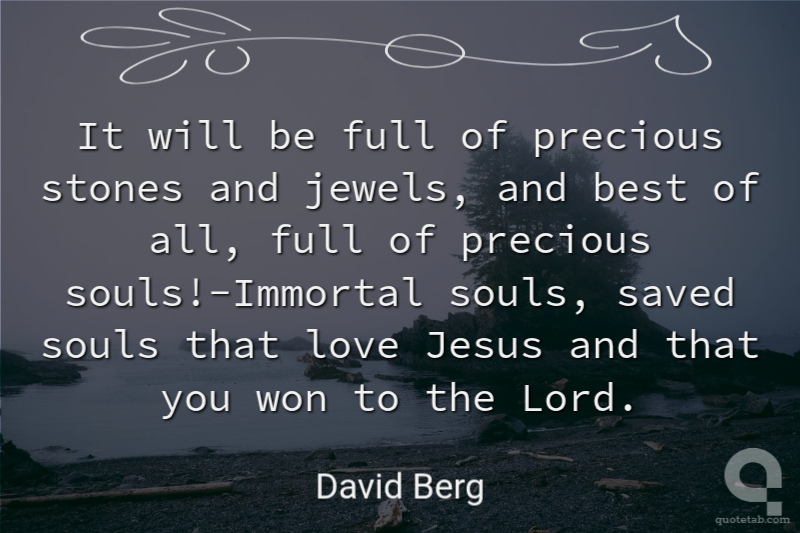 It will be full of precious stones and jewels, and best of all, full of precious souls!-Immortal souls, saved souls that love Jesus and that you won to the Lord.