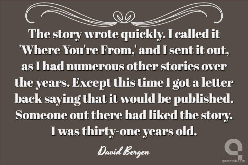 The story wrote quickly. I called it 'Where You're From,' and I sent it out, as I had numerous other stories over the years. Except this time I got a letter back saying that it would be published. Someone out there had liked the story. I was thirty-one years old.