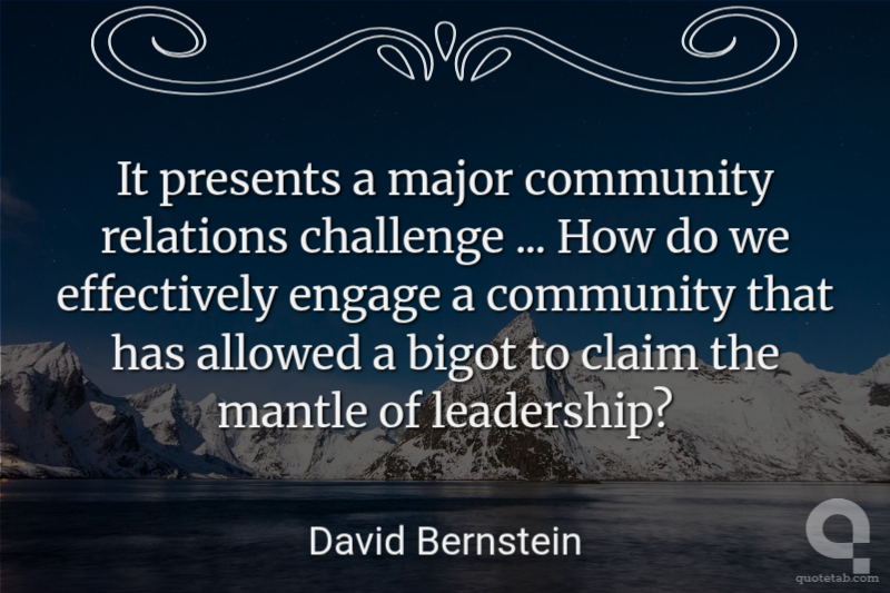It presents a major community relations challenge ... How do we effectively engage a community that has allowed a bigot to claim the mantle of leadership?