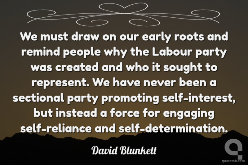 We must draw on our early roots and remind people why the Labour party was created and who it sought to represent. We have never been a sectional party promoting self-interest, but instead a force for engaging self-reliance and self-determination.
