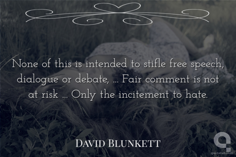 None of this is intended to stifle free speech, dialogue or debate, ... Fair comment is not at risk ... Only the incitement to hate.