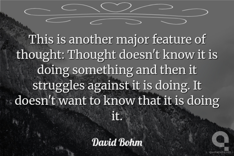 This is another major feature of thought: Thought doesn't know it is doing something and then it struggles against it is doing. It doesn't want to know that it is doing it.